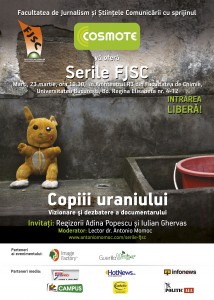 Acum câţiva ani am proiectat la Serile FJSC filmul despre exploatarea de la Roşia Montana intitulat „Noul Eldorado”, în regia lui Tibor Kocsis. Pe 23 martie 2010 vom difuza la Facultatea de Jurnalism, Universitatea Bucureşti, documentarul “Copii Uraniului”, în regia lui Adina Popescu şi Iulian Ghervas, produs de către Libra Film, cu sprijinul Centrului Naţional al Cinematografiei şi al Televiziunii Române.